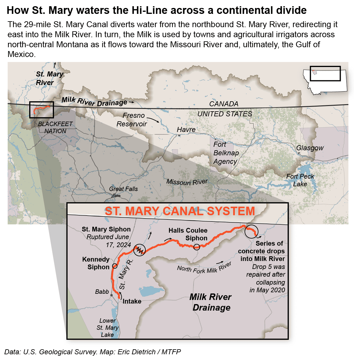 “Let’s get the engineering done. Let’s get the parts ordered, then move forward and fix the St. Mary’s bypass so we don’t have the discussion 20 years from now,” Zinke told MTFP. The project should be more than a regional concern, Zinke said, because the rivers involved are at the upstream limits of two major drainages: Hudson Bay for the St. Mary, and the Missouri River for the Milk.