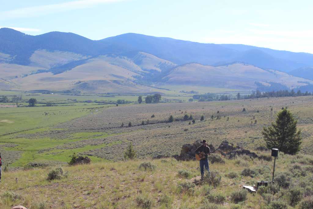 The event is held on grassland the ranch uses for cattle grazing. But for the weekend, crews truck in large tents for vendors and speakers, port-a-potties, water coolers, electric fencing to deter grizzlies and the stage.