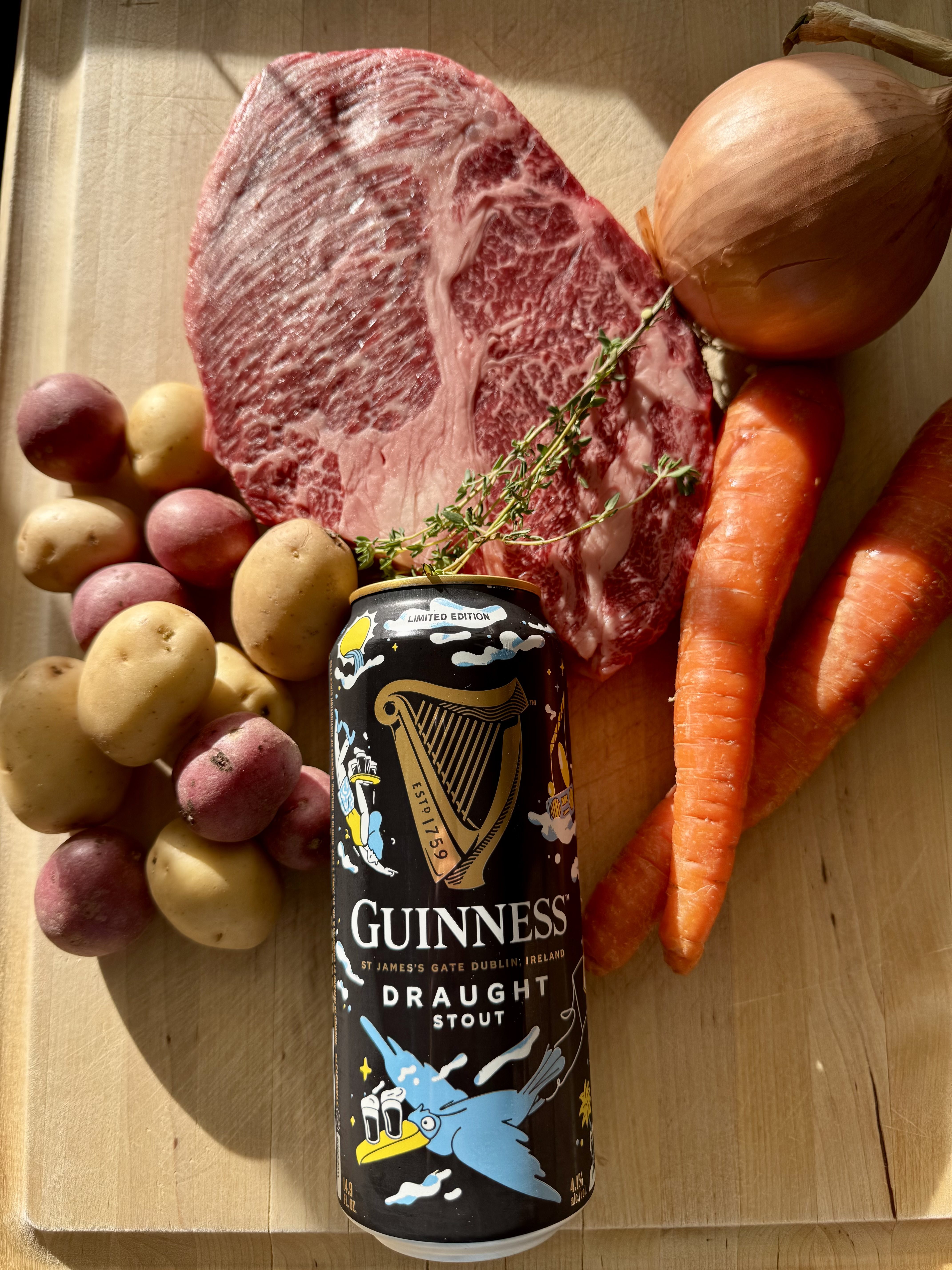 For stew inspiration, I look to the Irish. Guinness stout beer is the backbone of my recipe, but Montana is dotted with more breweries than you can count, many with distinctive stout offerings of their own that will work just as well. Potatoes and carrots pair well with chuck roast to create a filling meal. Thyme, an herb often used on the Emerald Isle, makes an appearance, along with Worcestershire sauce from neighboring Britain.