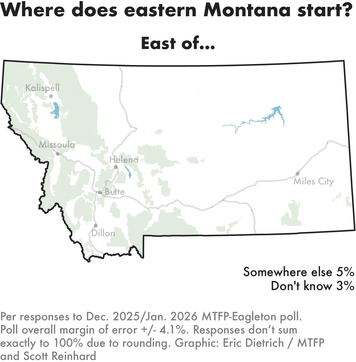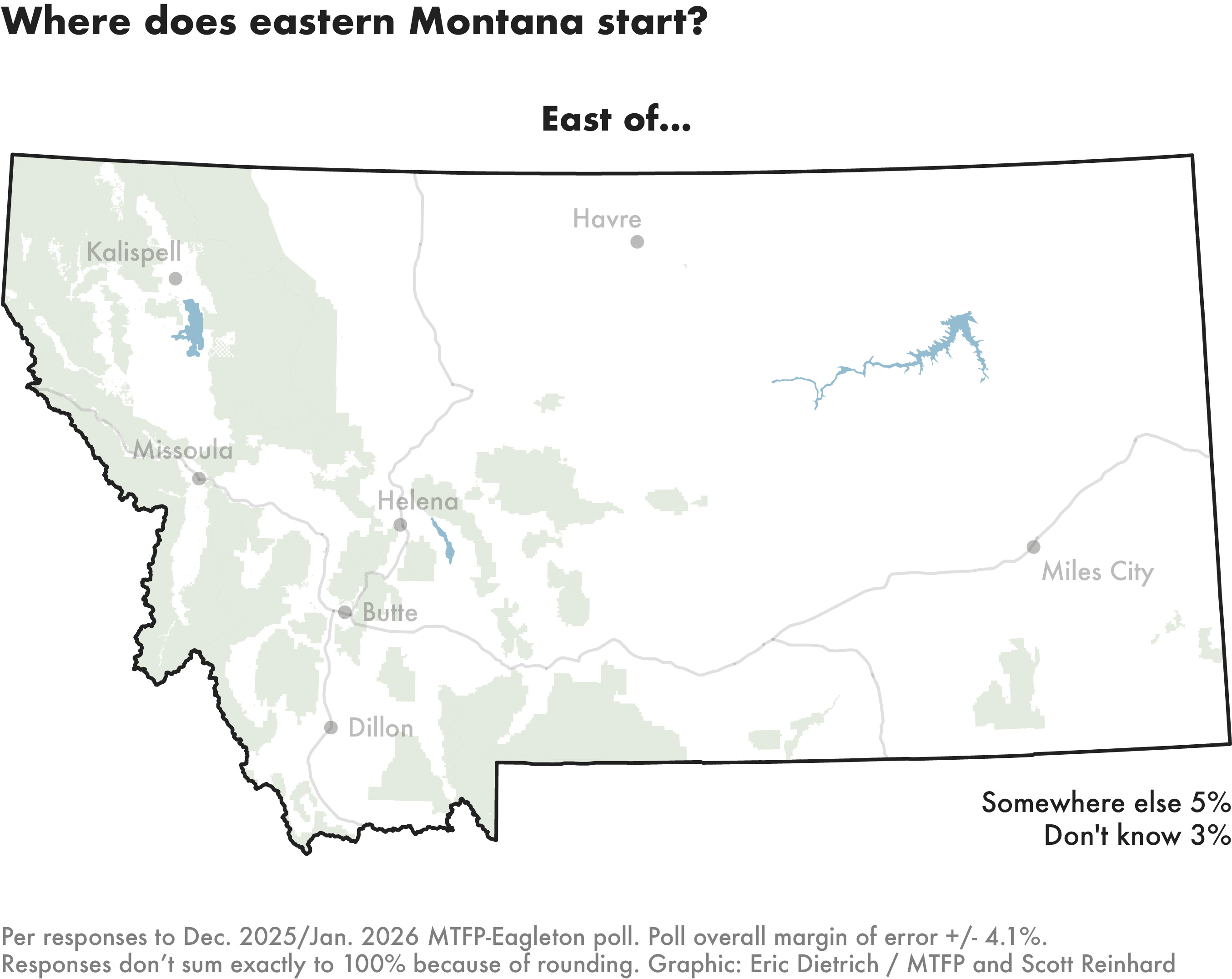 A question on how to divide Montana’s eastern region from its western one didn’t produce a clear consensus. The top selections for a dividing line were quite literally hundreds of miles apart — Billings and the Continental Divide.