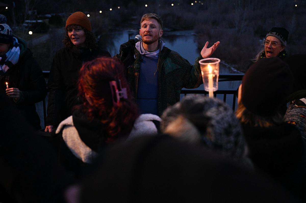 Barron Peper with Missoula Sings, a group that organizes community gatherings, led the group in several songs, including “And When I Rise” and “This Little Light of Mine.”